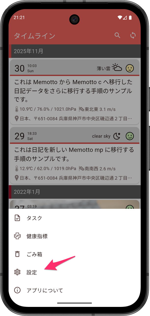 2Memotto mp の設定画面でカスタマイズ