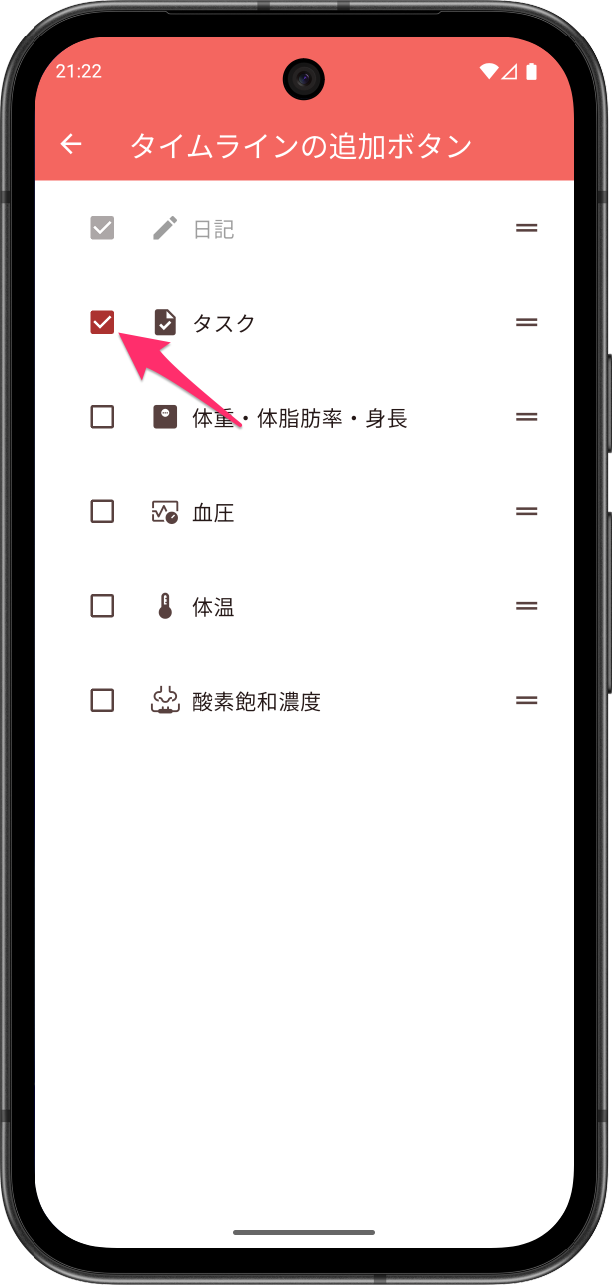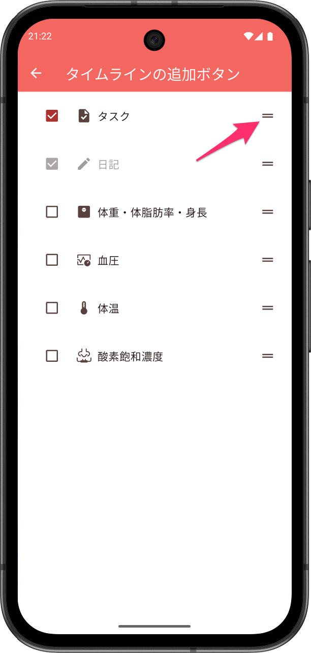 ご自身のタスクや健康指標の登録頻度に合わせて、カスタマイズください。