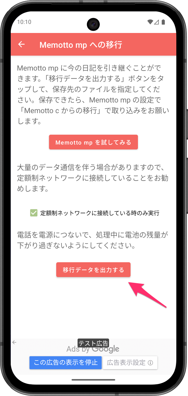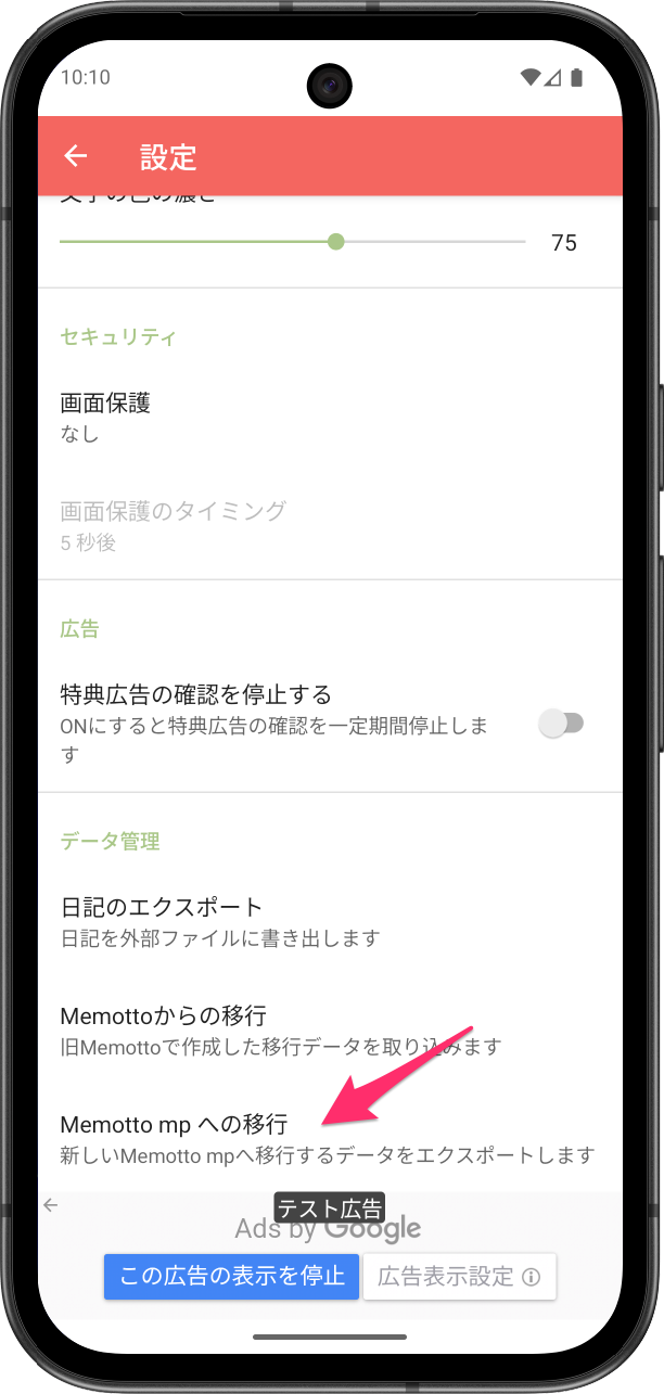 設定画面の「日記のエクスポート」ではありませんのでご注意ください。