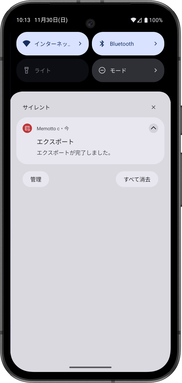 エクスポートしたファイルは、ご利用の端末のクラウドストレージ(例: Google Drive)やローカルフォルダに保存してください。
