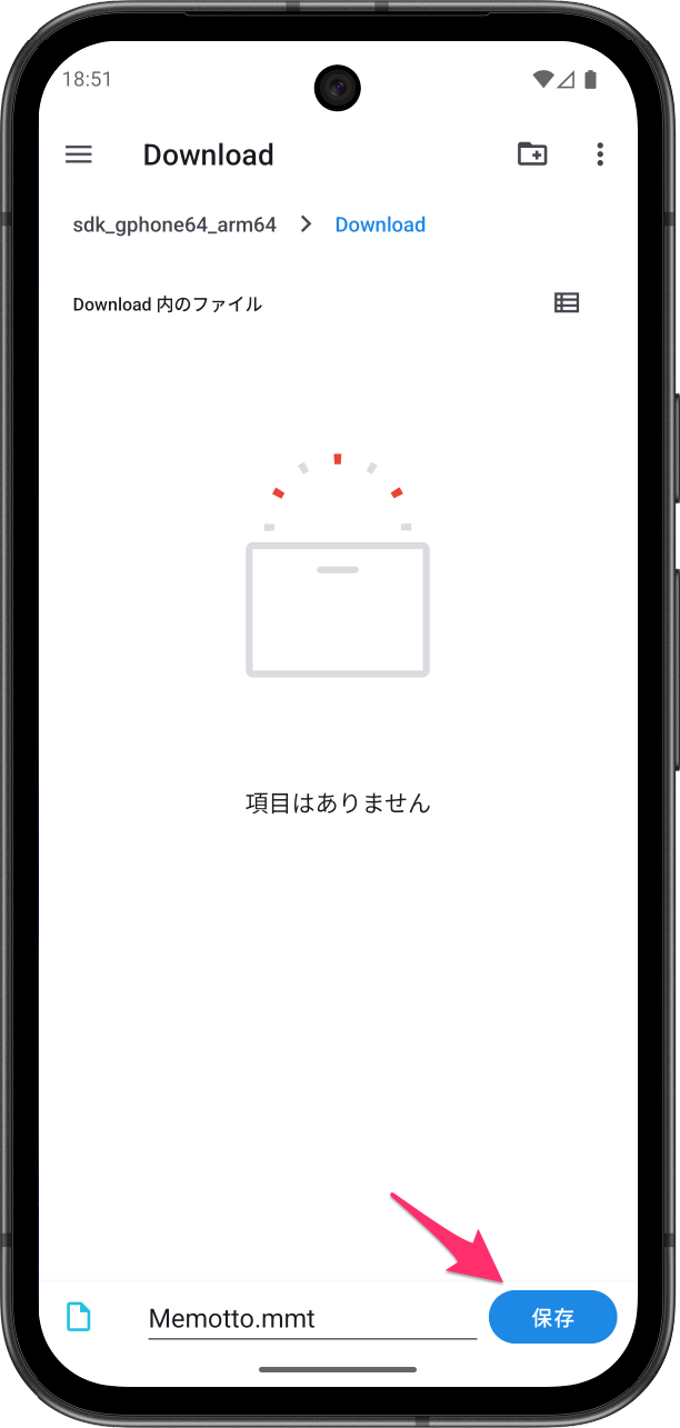 エクスポートしたファイルは、ご利用の端末のクラウドストレージ(例: Google Drive)やローカルフォルダに保存してください。